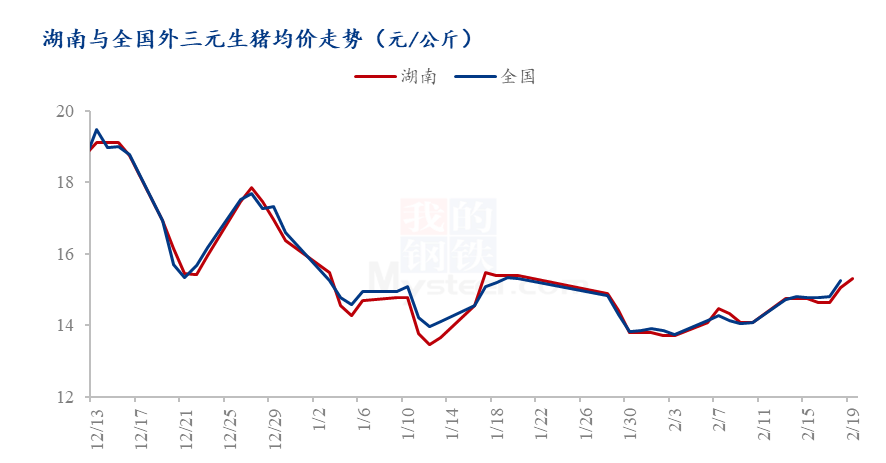 前言:湖南市场地处承接南北生猪调运的要塞之处,生猪产能稳定,以外调南方为主,受周边地区猪价变动的影响较大,2月作为传统的淡季,猪价成功守住7元,在屠宰分割入库、二育陆续进场及消息面的推动下,每逢周末必涨价,目前利多因素居多,但终端消费支撑力度有限,后期走势仍以震荡为主。