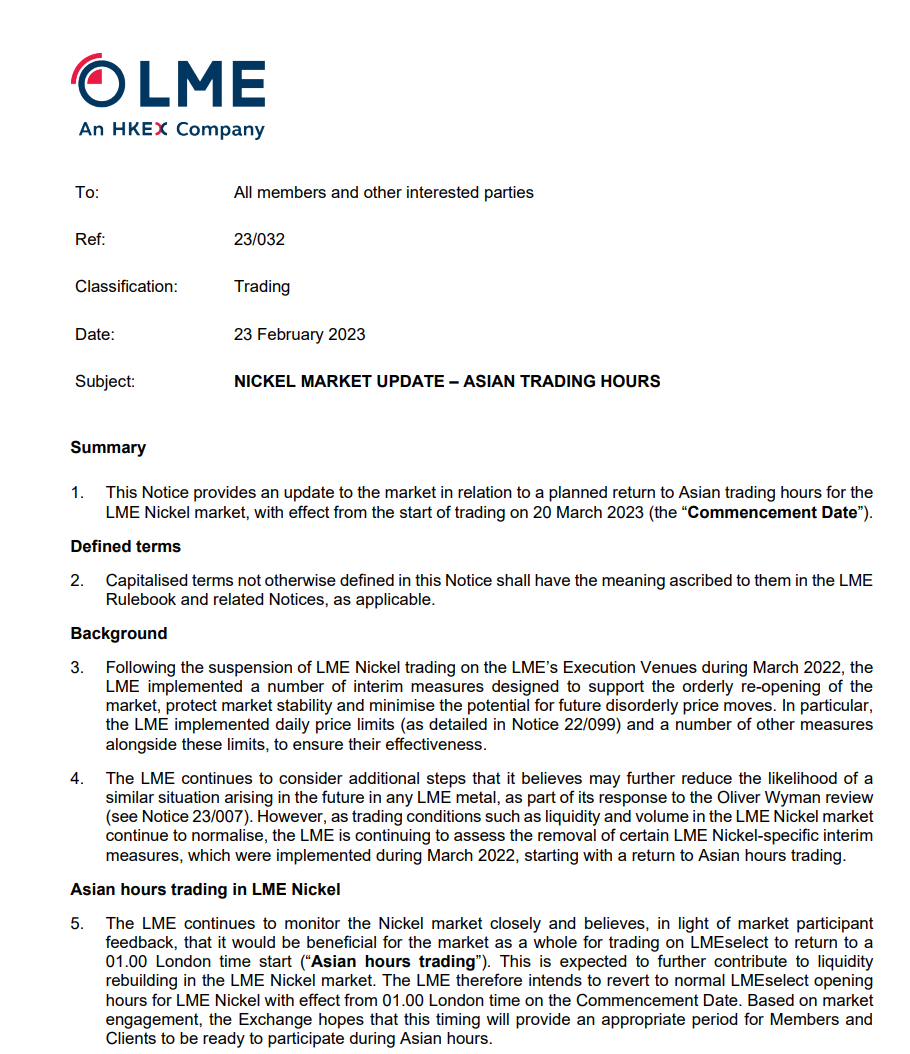 当地时间周四,伦敦金属交易所(LME)发布公告称,风波不断的伦镍期货合约将从3月20日开始恢复亚盘时段的交易。对于饱受流动性问题困扰的老牌交易所而言,这也是恢复信誉和市场地位的关键一搏。