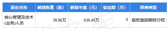 根据市场公开信息整理,剑桥科技(603083)(603083)于2月27日将有38.86万股限售股份解禁上市,为公司股权激励期权行权,占公司总股本0.15%。最近一年内,该股累计解禁163.25万股,占总股本的0.62%。本次解禁后,公司还有771.98万股限售股份,占总股本2.95%。具体如下图所示:
